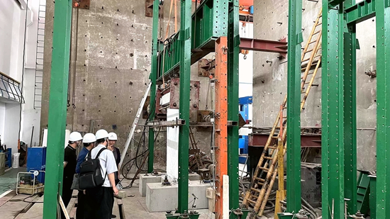 隨后,土木工程學院魯亮教授帶領參觀了振動臺實驗室,該實驗室能開展建筑模擬抗震、阻尼器(墻)、支座等試驗。